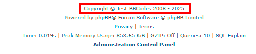 显示论坛页脚中的版权,包括站点名称、板开始年份和当前年份。 官方下载 https://www.phpbb.com/customise/db/extension/board_copyright/