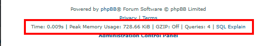 启用调试和显示加载时间(Debug & Display Load Time) 而不编辑核心文件。在页脚中可见。