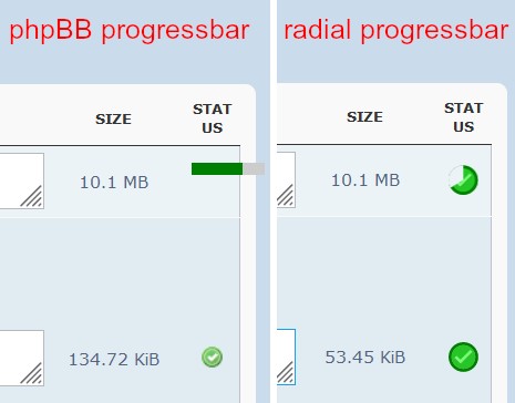 此扩展将线性文件上传进度条更改为径向进度条。 官方下载 https://www.phpbb.com/customise/db/extension/radialprogbar/
